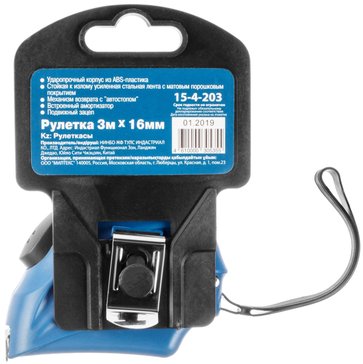 Ударопрочный корпус из ABS-пластика устойчив к ударам, пыли и влаге, обеспечивает долгий срок службы даже при активной эксплуатации. Стойкая к излому усиленная стальная лента с матовым порошковым покрытием достаточно жёсткая, чтобы не провисать при выдвижении, и при этом легко сматывается. Надёжный механизм возврата с «автостопом» - плавное и безопасное сматывание без рывков и заеданий. Металлический концевой крючок обеспечивает точную фиксацию на краю измеряемого объекта и компенсирует погрешность при замере «в натяг» и «в упор».