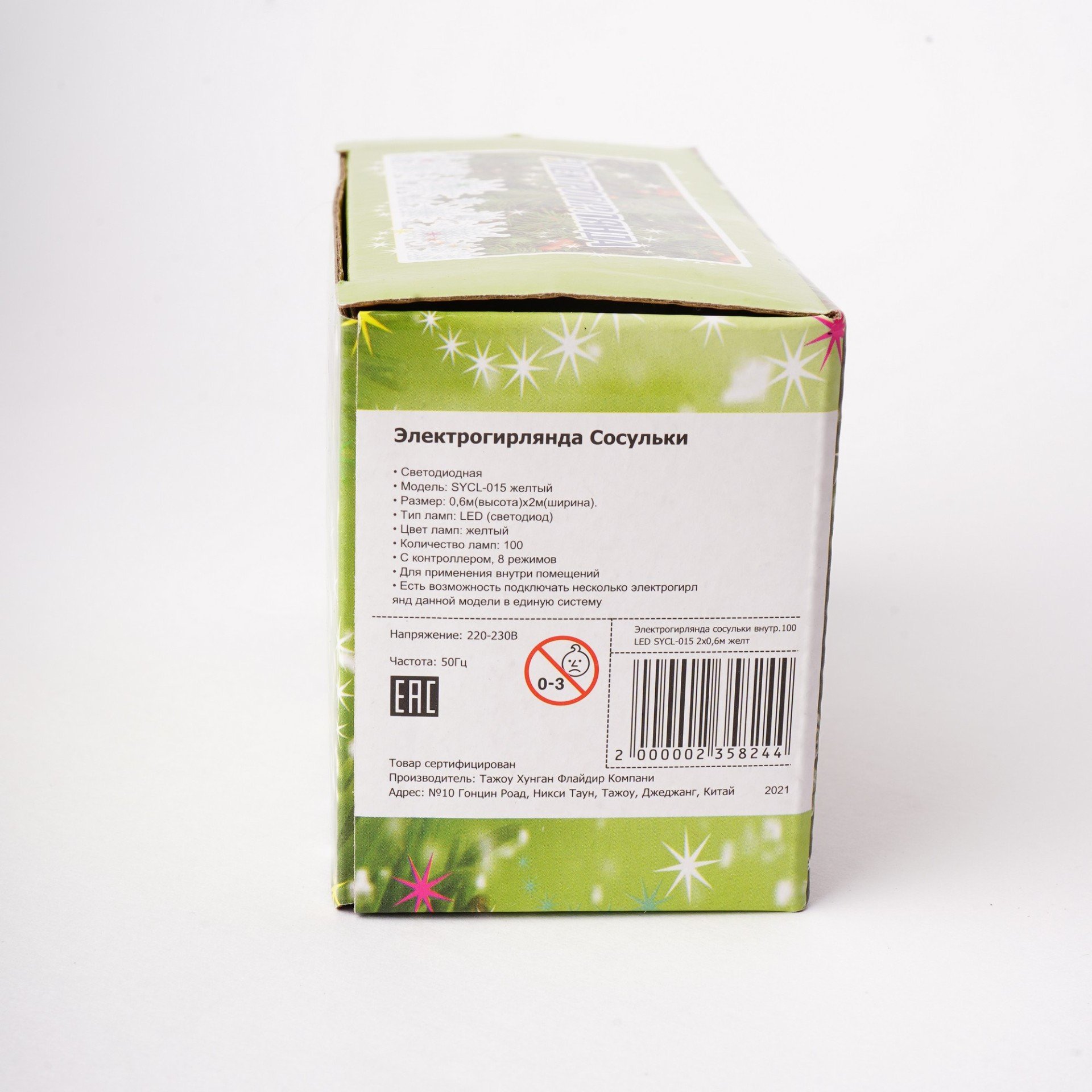 - Электрогирлянда сосульки внутренняя 2х0,6м 100LED желтый SYCL-015
