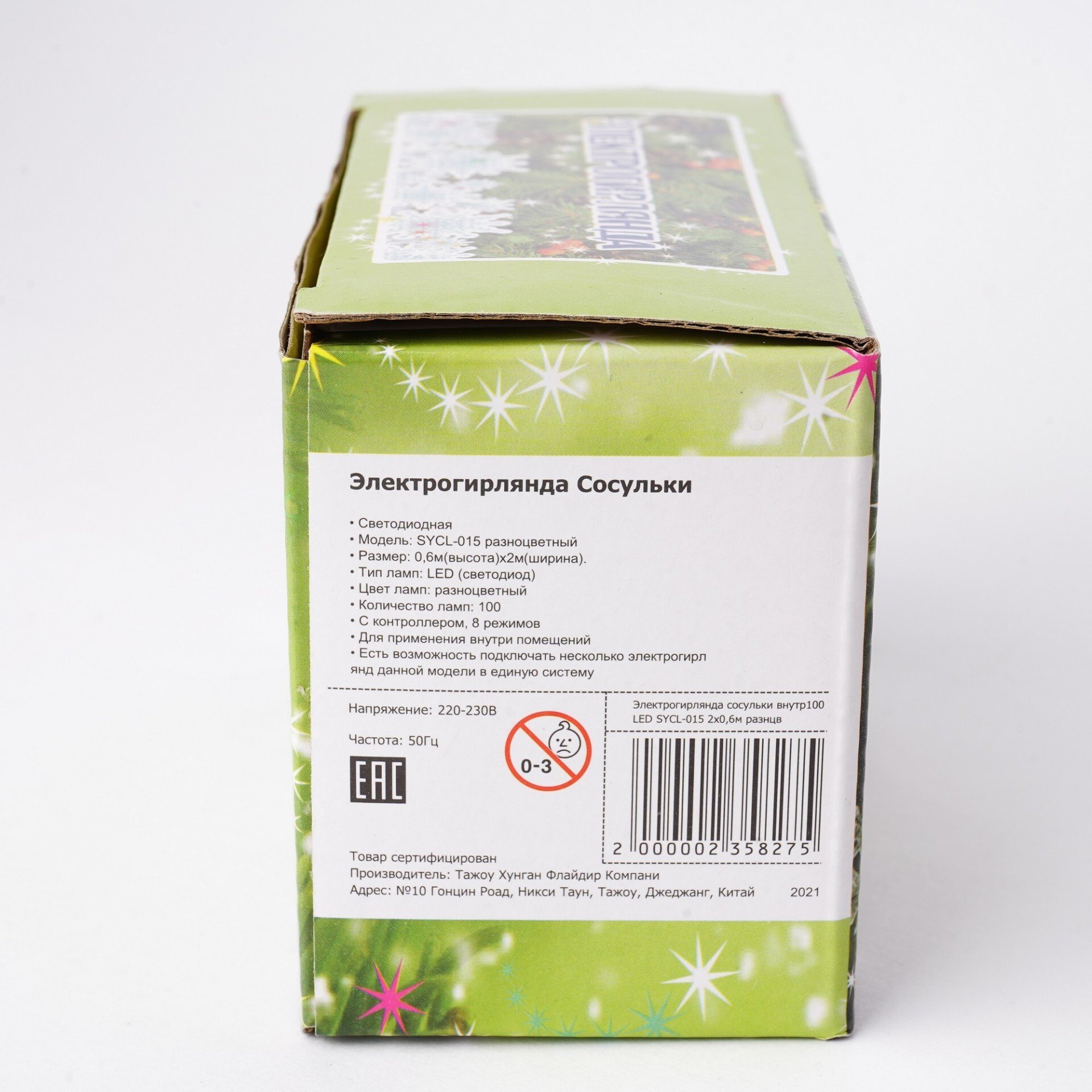 - Электрогирлянда сосульки внутренняя 2х0,6м 100LED разноцветный SYCL-015