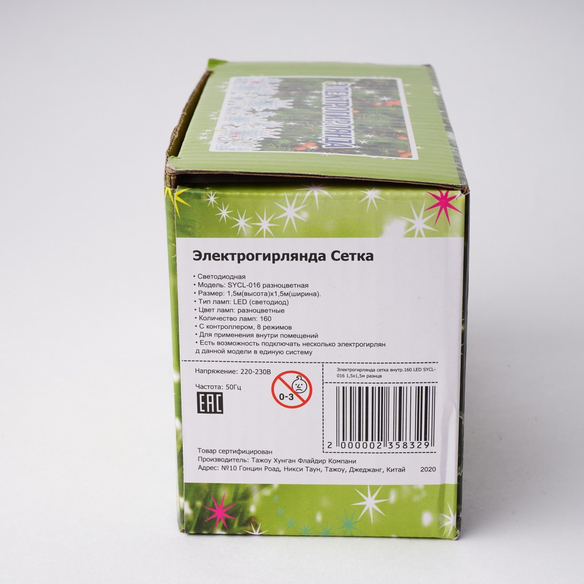 - Электрогирлянда сетка внутренняя 1,5х1,5м 160LED, разноцветный SYCL-016