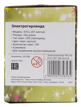 - Электрогирлянда Нить внутренняя 10м 160LED желтый SYCL-207