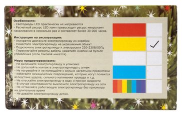 Данная гирлянда рассчитана на длительное использование, легко моется, устойчиво к внешнему воздействию, удобна и легка в обращении.