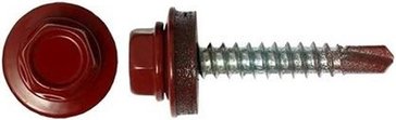 Профессиональный кровельный саморез с окрашенным покрытием цвета темно красный для монтажа кровельных и фасадных материалов.