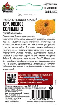 - Семена Подсолнечник Оранжевое солнышко 0,5г
