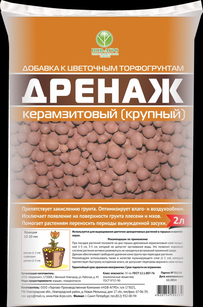 - Дренаж керамзитный крупная фракция 10-20мм 2л