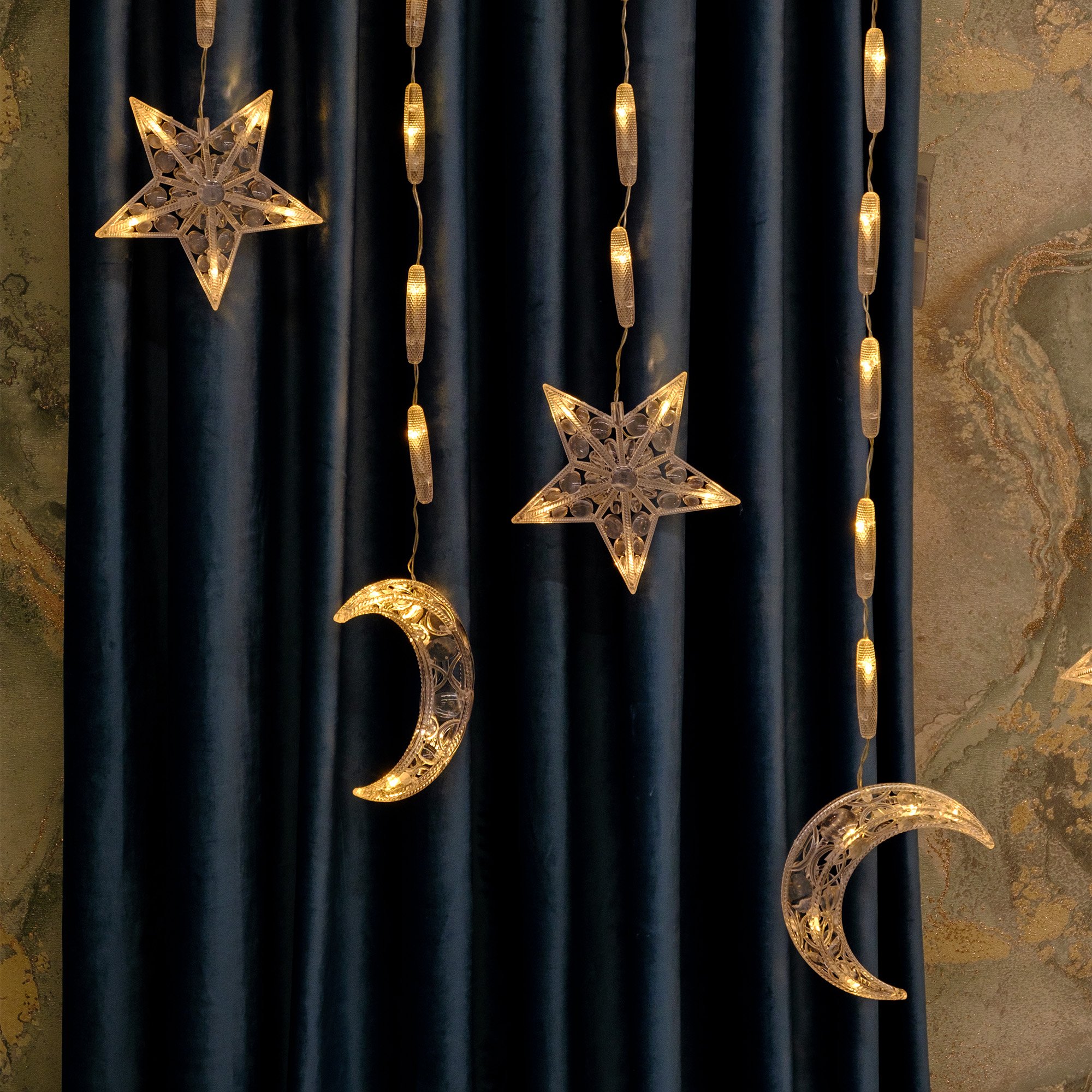 Электрогирлянда Луна и Звезды занавес внутренняя широко используется для оформления новогоднего декора домов и для создания новогодней атмоферы в ваших домах, а также для украшения новогодних елок.