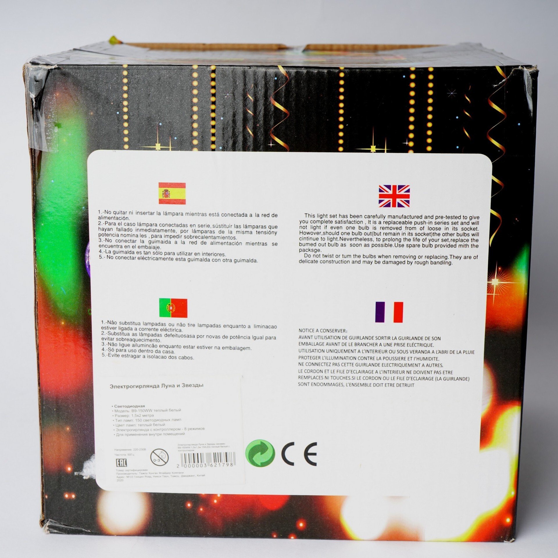 - Электрогирлянда Луна и Звезды занавес внутренняя 1,5х1,2м 150LED,теплый белый B9-150WW