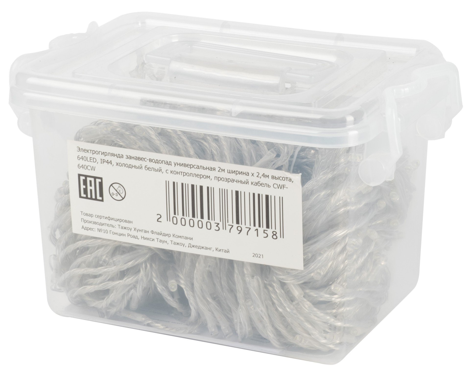 - Электрогирлянда занавес-водопад универсальная 2х2,4м 640LED,холодный белый СWF-640CW