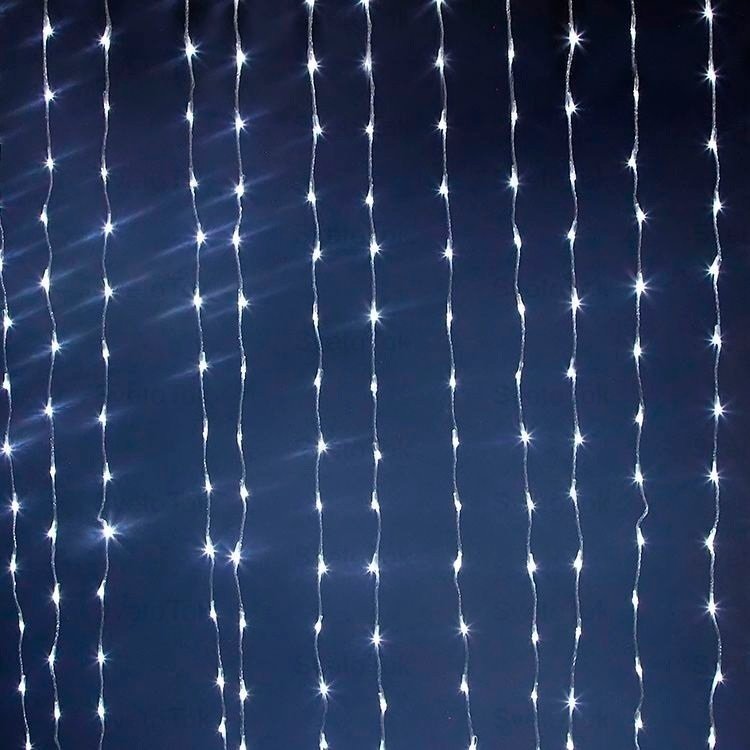 Электрогирлянда занавес-водопад универсальная широко используется для оформления новогоднего декора домов, офисов, фасадов зданий и новогодних елок.