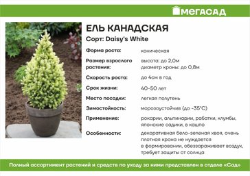 декоративная бело-зеленая хвоя, очень плотная крона не нуждается в формировании, обеззараживает воздух, требует защиты от солнца
