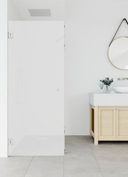 Распашная дверь подойдет для просторной ванной комнаты или совмещенного санузла. Конструкция органично впишется в разные интерьеры, не утяжеляет пространство. Материал дверцы пропускает достаточное количество света, легко очищается от капель воды, мыльных разводов. Технические характеристики: • беспрофильная система; • закалённое травмобезопасное матовое стекло толщиной 8 мм; • материал фурнитуры: латунь; • финишная отделка: хром, метод нанесения- гальваника; • универсальная петля с доводчиком; Преимущества модели: • Беспрофильная система обеспечивает максимально легкий уход и чистоту. • Укомплектована ПВХ уплотнителями от протекания воды. • Универсальная петля позволяет установить дверь как с правым, так и с левым открыванием. • Петля позволяет открывать дверь на 90° как наружу, так и внутрь. • Петля с функцией дверного доводчика (доводит дверь от угла 25° и фиксирует в положении «закрыто»). • Материалы и финишная отделка фурнитуры долговечны и не подлежат коррозии. Для установки углового ограждения подойдёт Панель Orion с кодом товара: 379539, 379551, 379563, 384627.