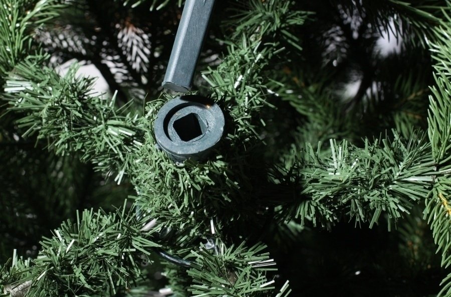 Проста в сборке - Вам нужно только достать из коробки и соединить между собой части ствола и расправить ветки, крепится на специальной подставке.