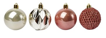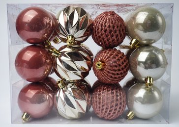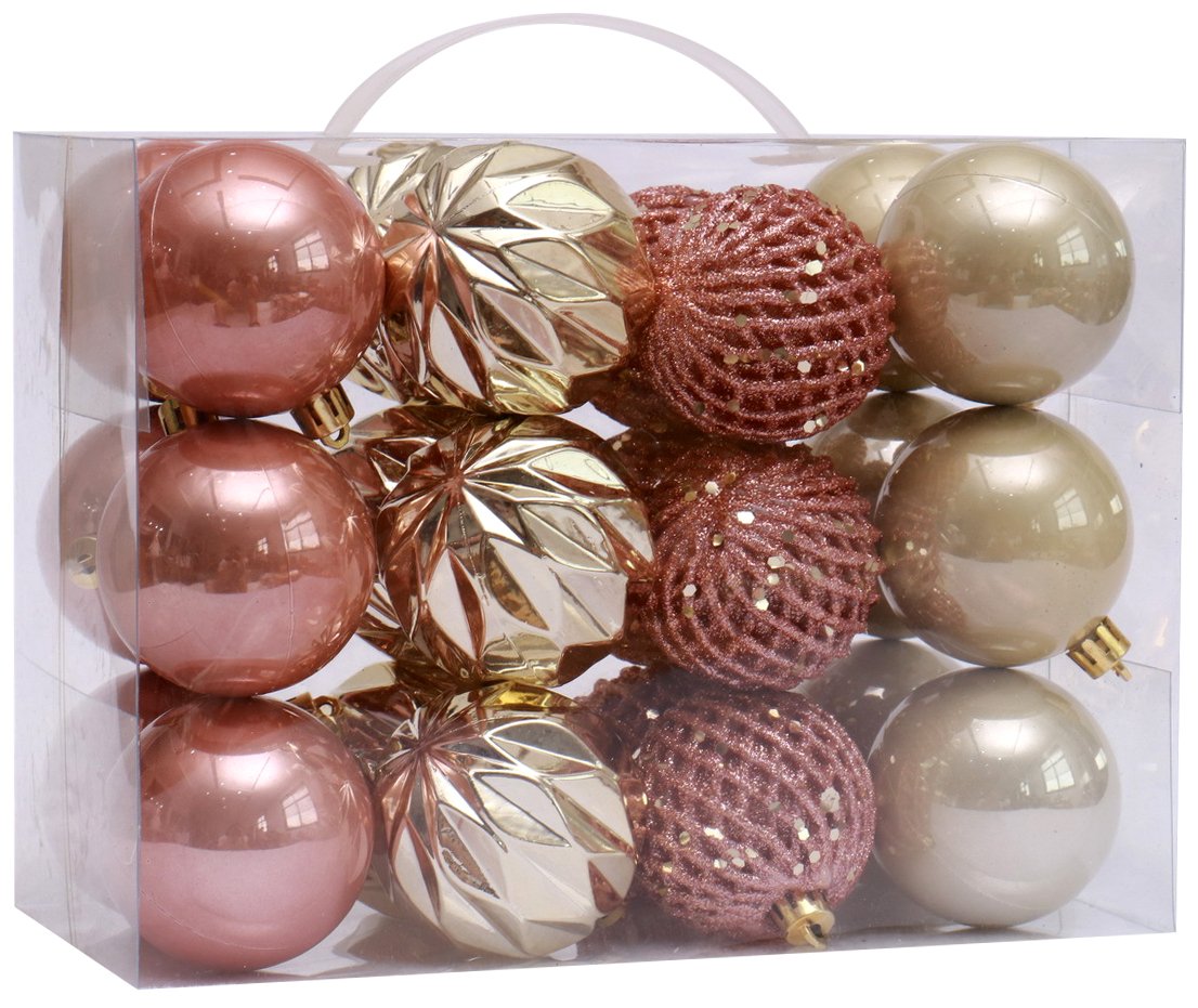 Чтобы декорировать елочку модно и элегантно, подвески на ней должны сочетаться между собой и с убранством комнаты. Важно не просто развесить свой "клад", но и хорошо продумать, где поместить ту или иную деталь. Один из самых простых способов решения этой задачи - выбрать елочные шарики одной цветовой гаммы. В этом вам поможет набор шаров 24 шт в розово-золотом отттенке , которые сделают украшение вашей новогодней елки еще более привлекательным.