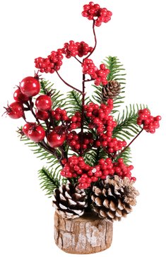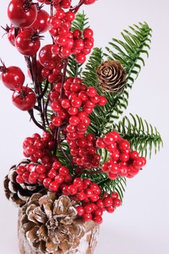 - Украшение настольное 30см с шишками и красными ягодами SYWB-032192