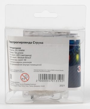 - Электрогирлянда-нить струна 5м 50LED,тёплый белый,источник питания батарейки DS-50WW