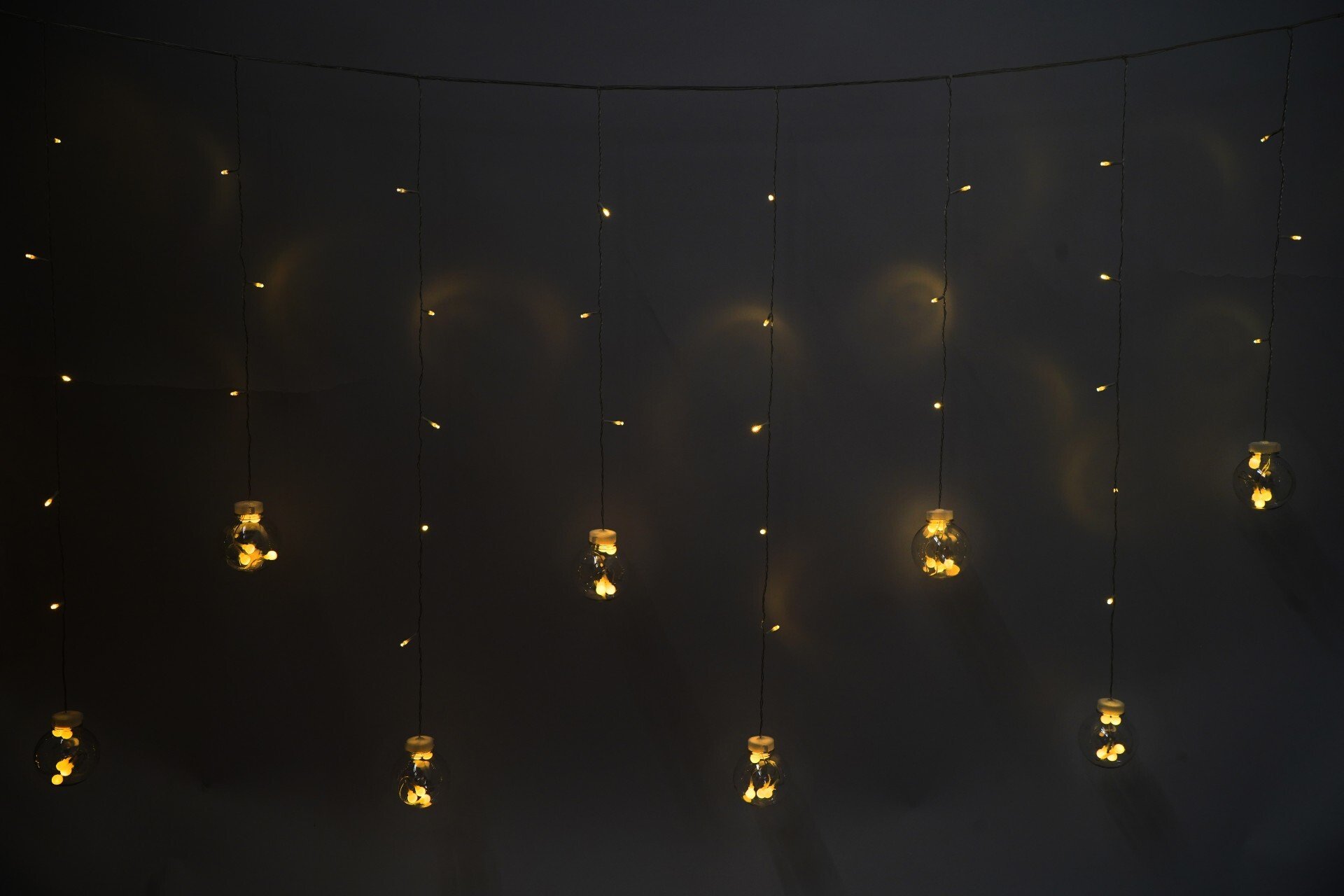 Гирлянда-занавес "Шары" – очень красивое и нежное украшение. Форма шариков и теплый белый свет создают ощущение, что в комнате падают снежинки. Размер 2,5х0,6м идеален для украшения узкого окна или дверного проема. Концевой коннектор позволяет соединять несколько гирлянд, что очень удобно. Качество хорошее, смотрится дорого. Прекрасное украшение для спальни или гостиной.