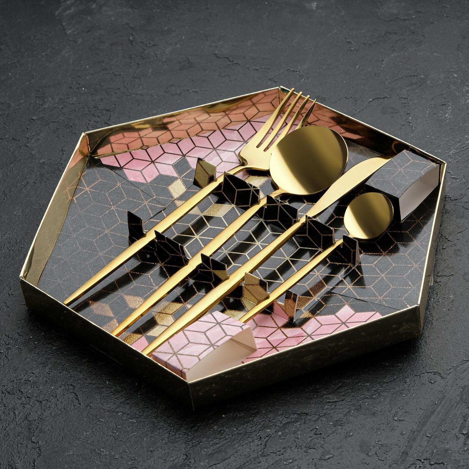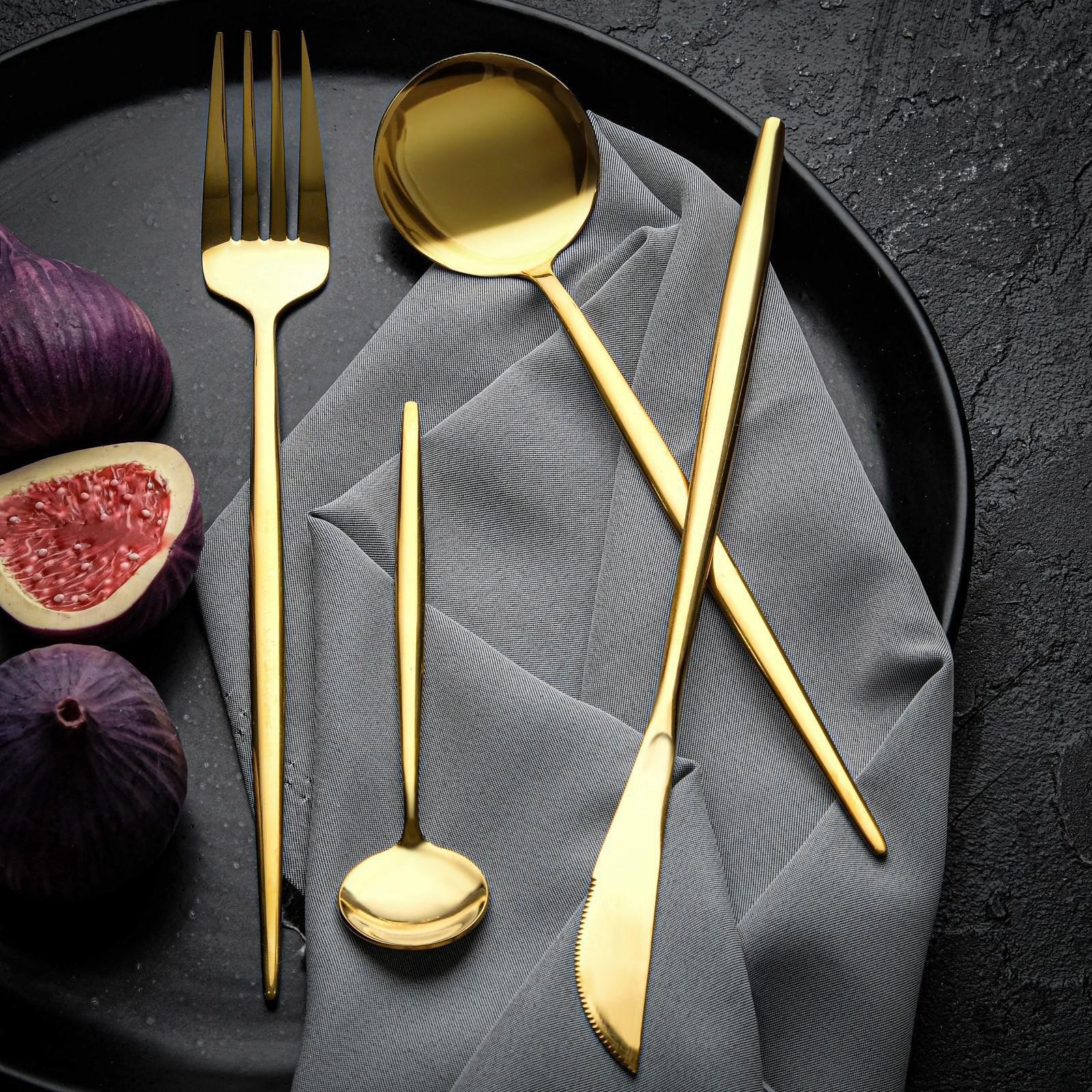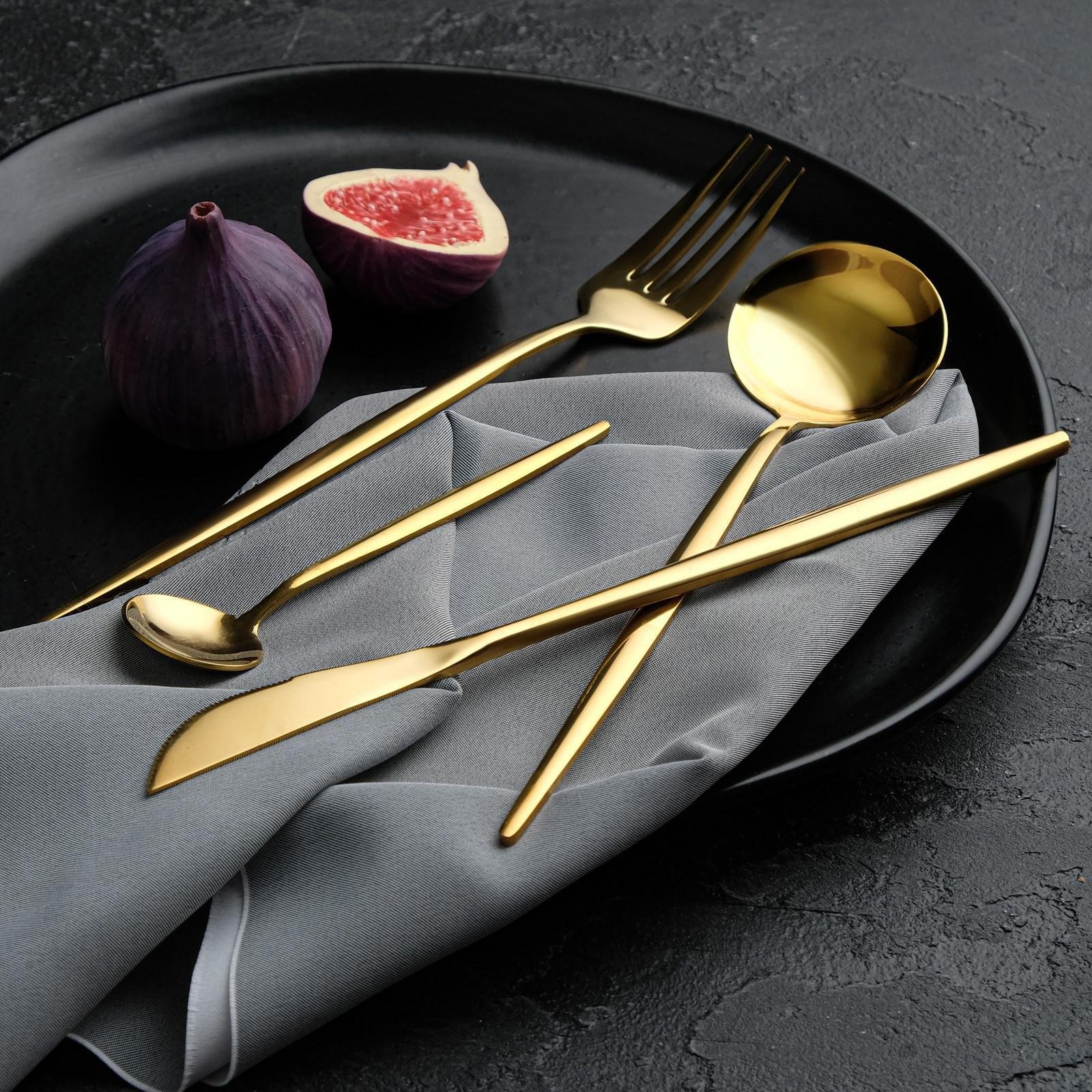 Набор кухонных столовых приборов в дизайнерском исполнении. Стильный дизайн приборов отлично дополнит любой кухонный интерьер и добавит эстетического удовольствия во время приема пищи.