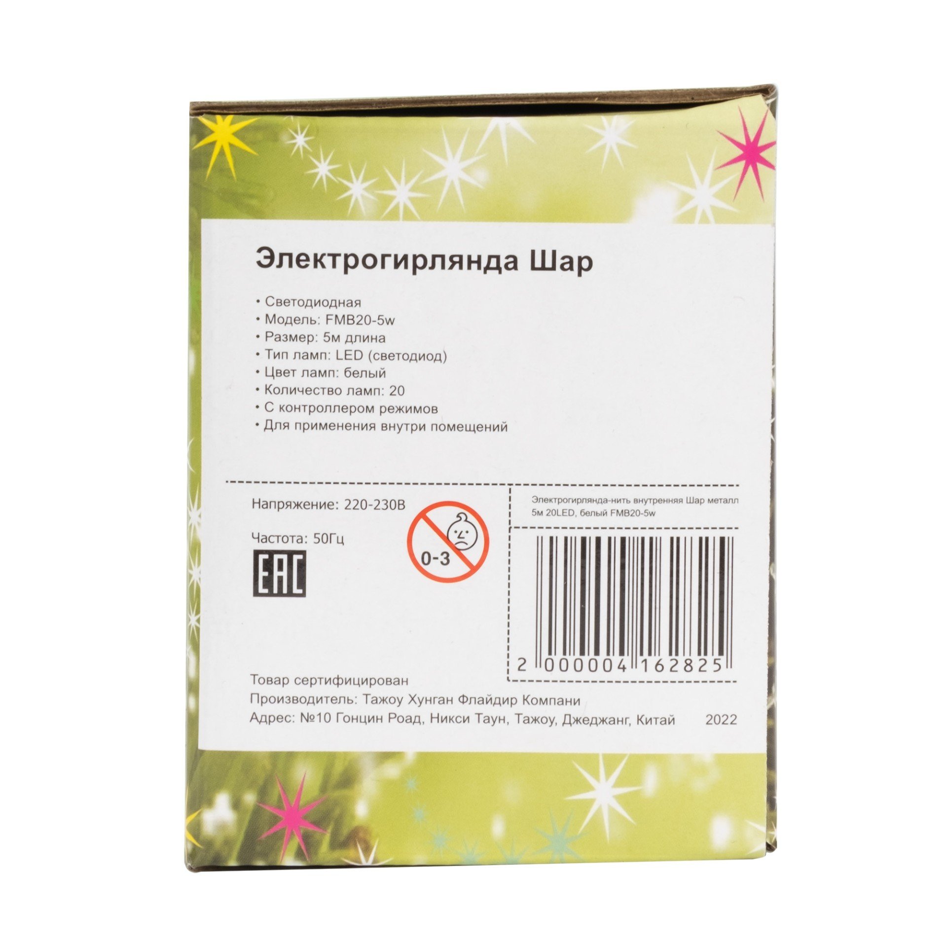- Электрогирлянда-нить внутренняя Шар металл 5м 20LED, белый FMB20-5w