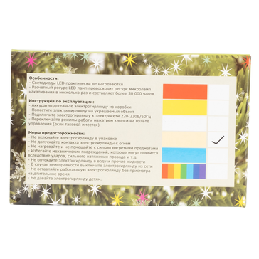 Данная гирлянда рассчитана на длительное использование, устойчиво к внешнему воздействию, удобна и легка в обращении.