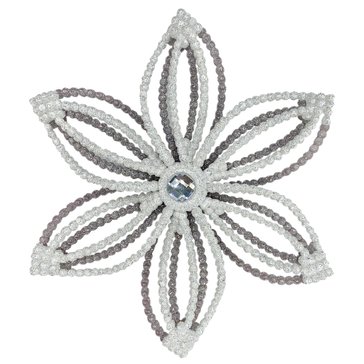 - Украшение елочное Снежинка Эдельвейс серебро/белый 120x40мм