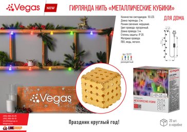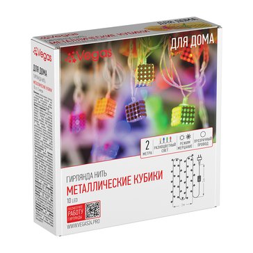 - Электрогирлянда Нить VEGAS Металлические кубики 2м разноцветные