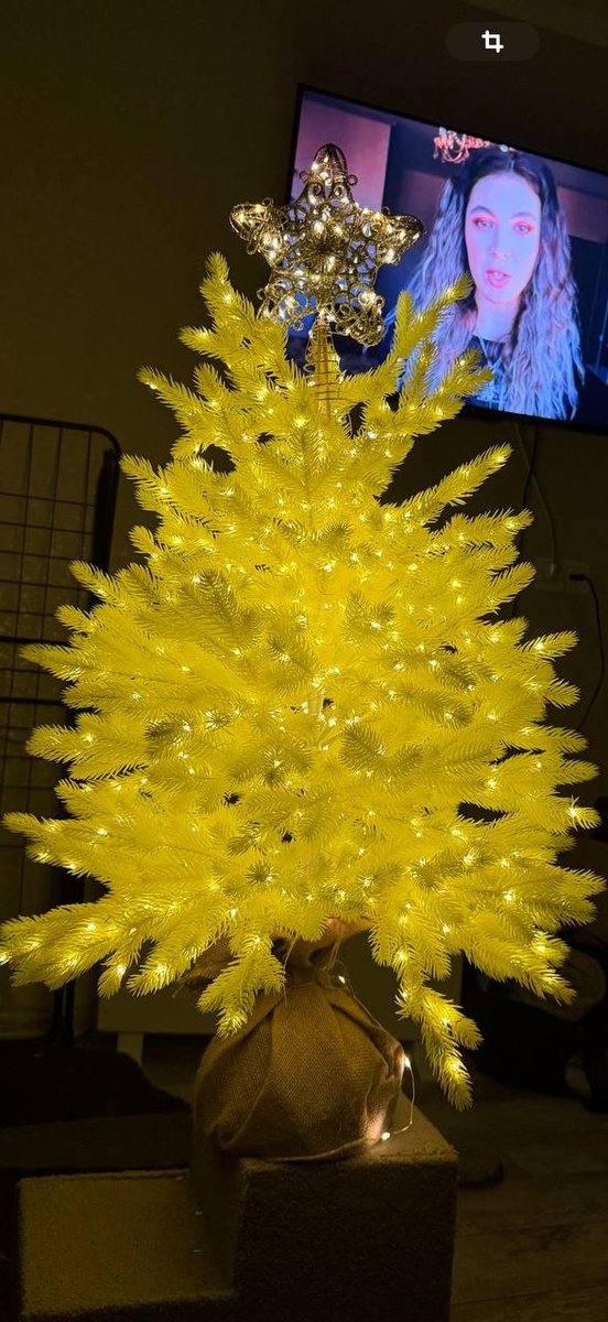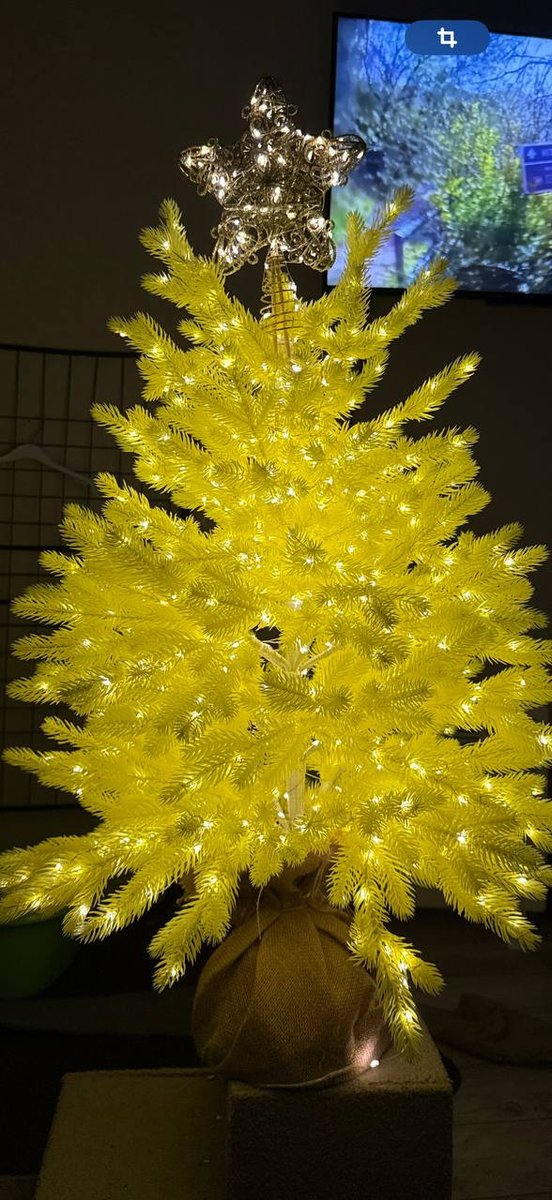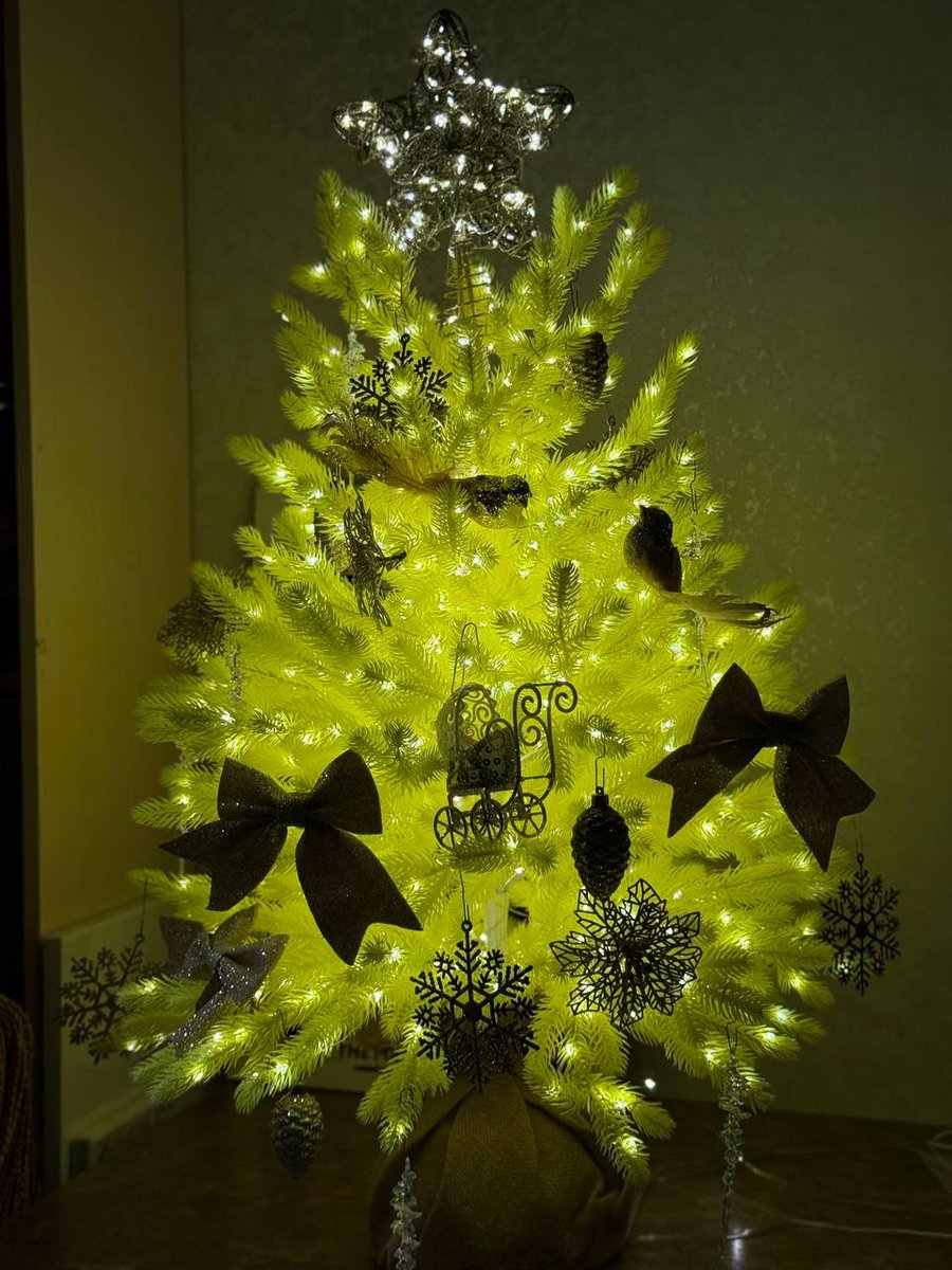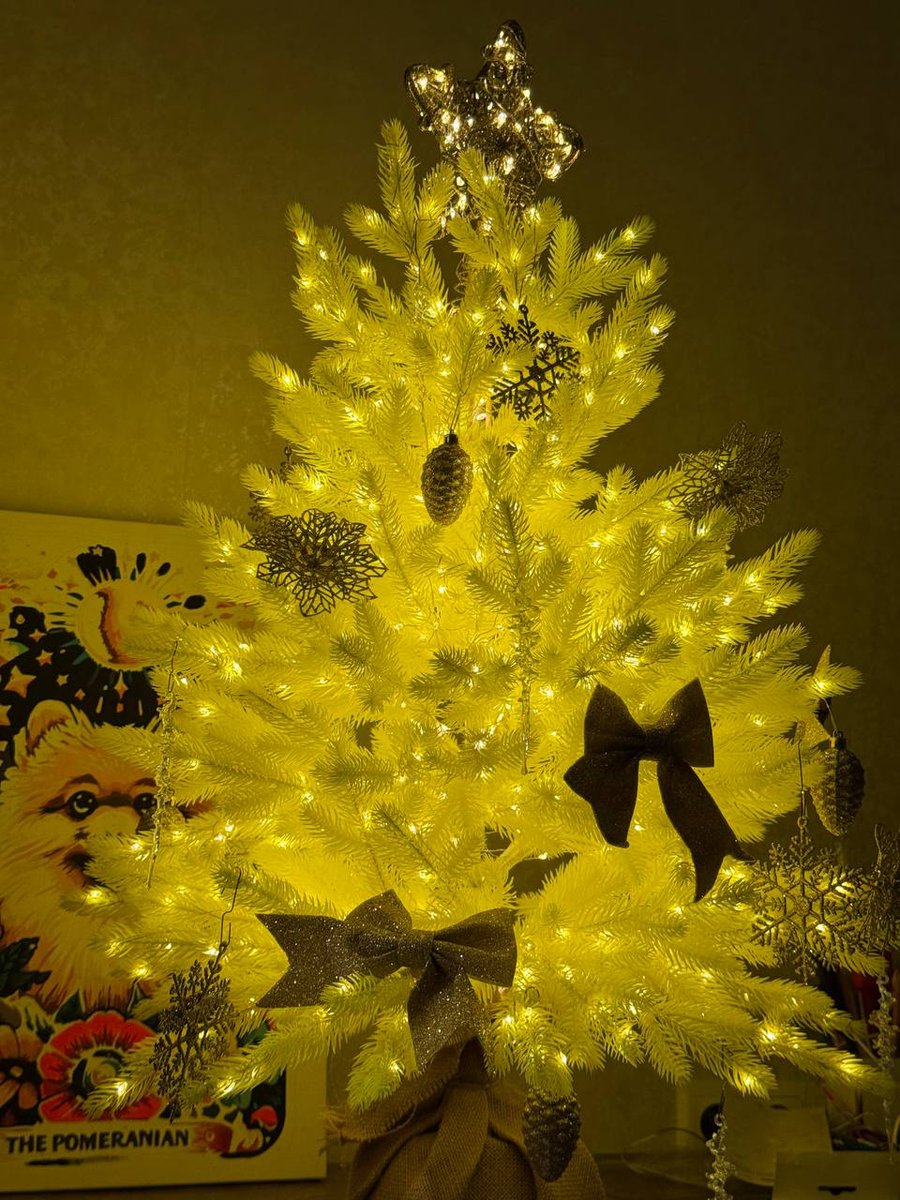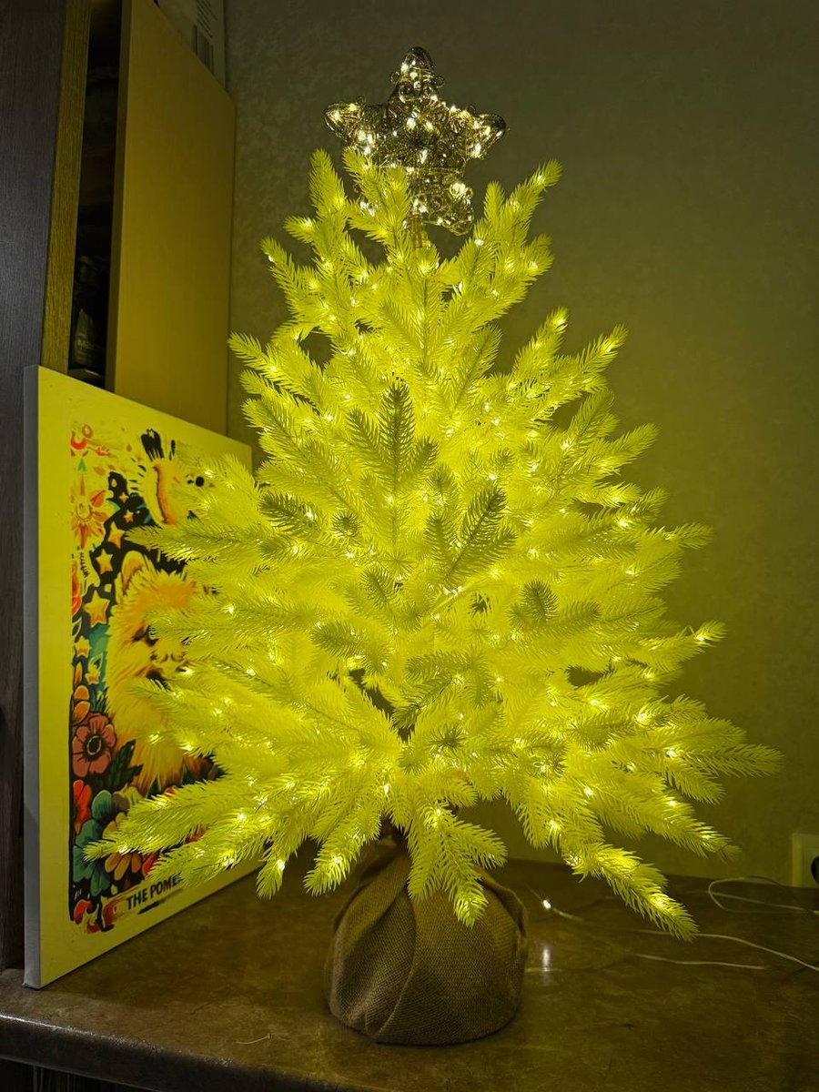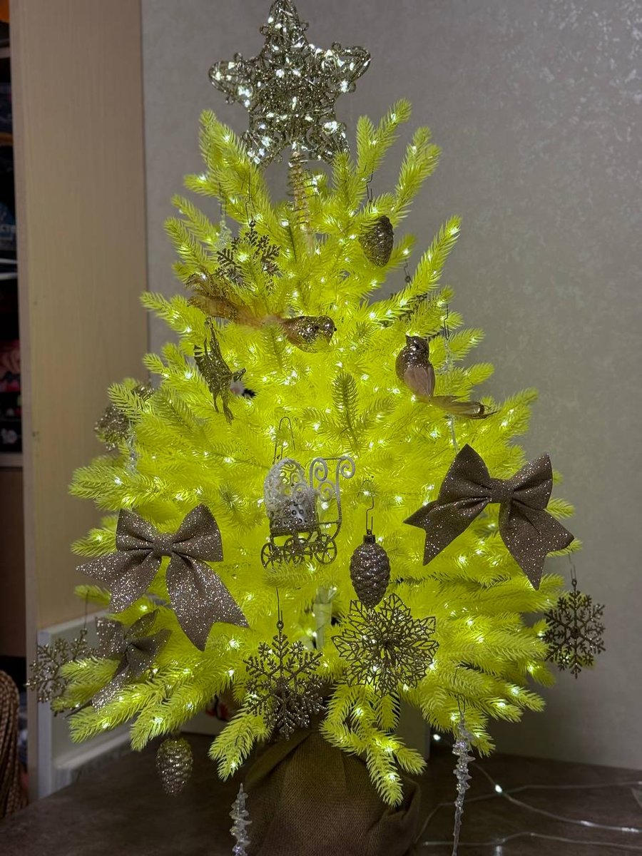 Шикарная маленькая елочка. Несколько лет смотрела на нее и все же решила купить, к тому же цена сейчас совсем сладкая! Очень классное качество, елка литая, целиковая. Обмотала теплой гирляндой росой, 100 м, итог на фото. Получилось сказочно. Украсила золотыми игрушками, смотримся красиво. Кто знает, в Нижнекамске городская елка желтая) Вдохновилась и тоже выбрала именно желтую елку! Для квартиры-студии или однушки просто идеальный вариант, много места не занимает, но настроение новогоднее дает))