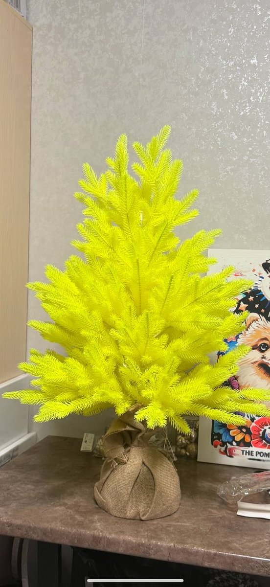Желтая неоновая ель высотой 80см стала ярким акцентом в нашем современном интерьере! Необычный цвет привлекает внимание и создает позитивное настроение. Устанавливали в студии - отлично вписывается в минималистичный дизайн. Качество хорошее - иголки держатся крепко. Украсили серебристыми шарами - смотрится очень стильно. После праздников убрали в шкаф - занимает мало места. Отличный выбор для тех, кто любит смелые решения!