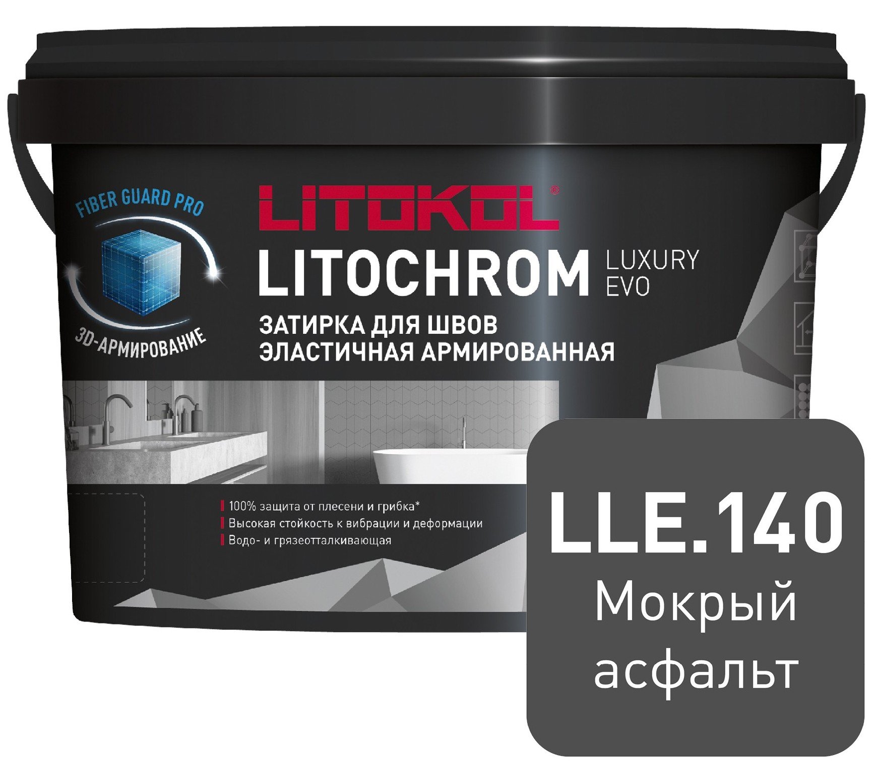 - Затирка цементно-полимерная LITOCHROM LUXURY EVO LLE.140 мокрый асфальт, 2кг