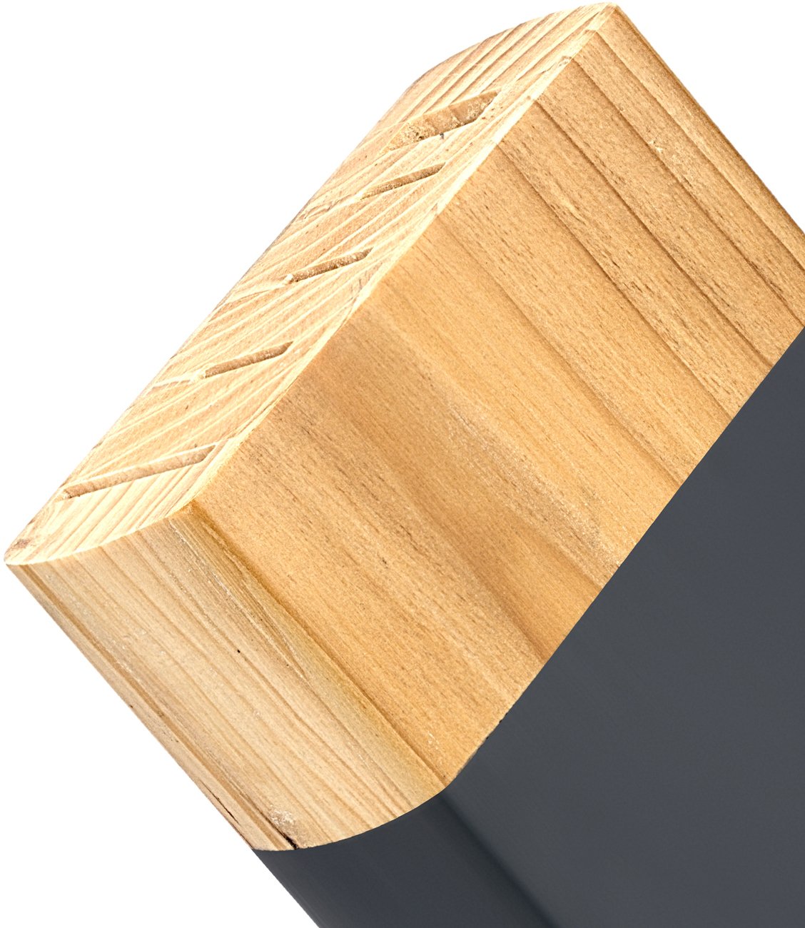 Благодаря пластиковым направляющим, ножи размещаются в подставке в любой последовательности и необходимом количестве, не соприкасаясь друг с другом, дольше сохраняют заточку и внешний вид.