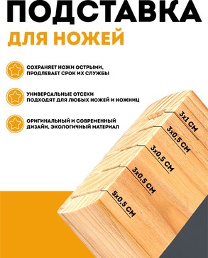Для увеличения срока службы подставки ножи и кухонные аксессуары должны размещаться в ней лекго и без усилий.