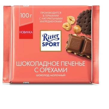 Нежный молочный шоколад с кусочками хрустящего шоколадного печенья и жареных лесных орехов в карамели
