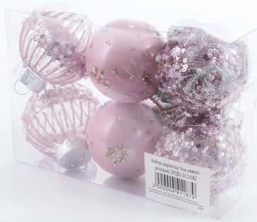 Чтобы декорировать елочку модно и элегантно, подвески на ней должны сочетаться между собой и с убранством комнаты. Важно не просто развесить свой "клад", но и хорошо продумать, где поместить ту или иную деталь. Один из самых простых способов решения этой задачи - выбрать елочные шарики одной цветовой гаммы. В этом вам поможет набор шаров 6 шт с розовым отливом, которые сделают украшение вашей новогодней елки еще более привлекательным.
