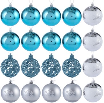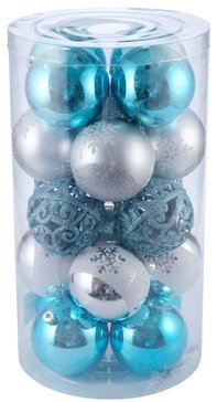 Чтобы декорировать елочку модно и элегантно, подвески на ней должны сочетаться между собой и с убранством комнаты. Важно не просто развесить свой "клад", но и хорошо продумать, где поместить ту или иную деталь. Один из самых простых способов решения этой задачи - выбрать елочные украшения одной цветовой гаммы. В этом вам поможет набор украшений из 20 предметов в серебряно голубой расцветке, который сделает украшение вашей новогодней елки еще более привлекательным.