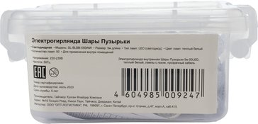 - Электрогирлянда внутренняя Шары Пузырьки 5м 50LED, теплый белый, лампы с газом, прозрачный кабель