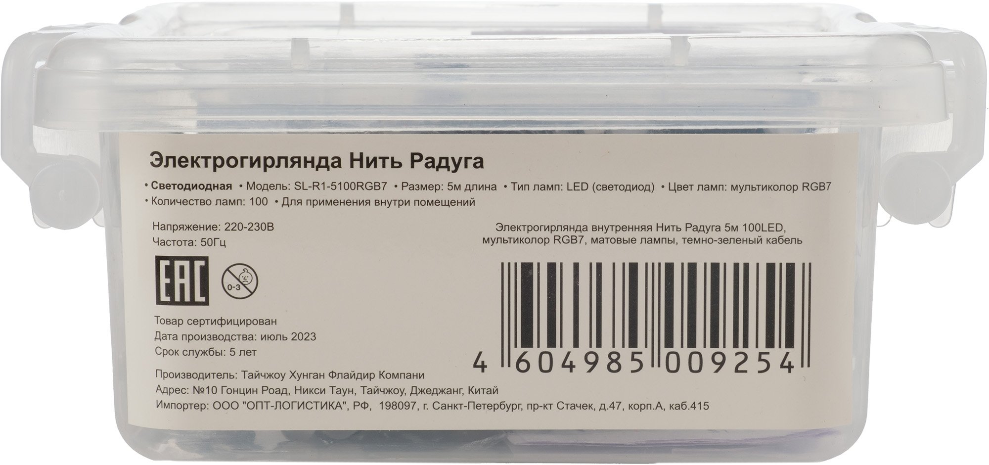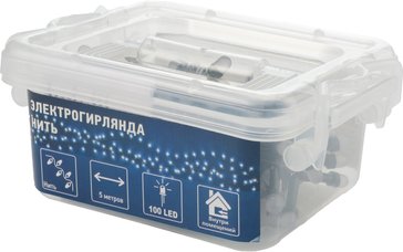 - Электрогирлянда внутренняя Нить Радуга 5м 100LED, мультиколор RGB7, матовые лампы, темно-зеленый кабель
