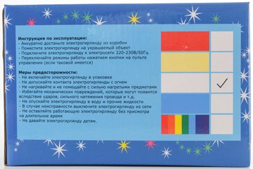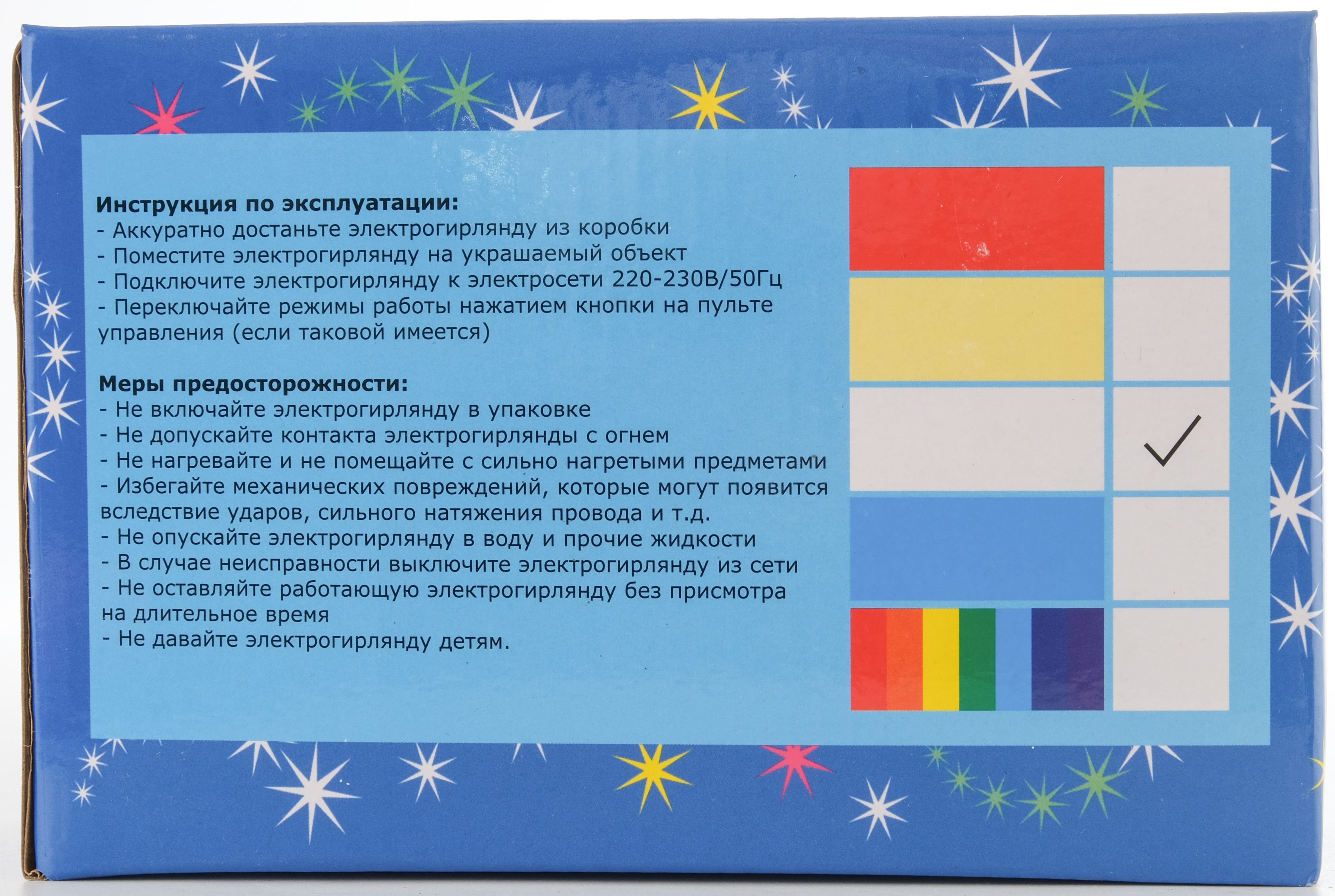 Данная гирлянда рассчитана на длительное использование, устойчиво к внешнему воздействию, удобна и легка в обращении и подключается непосредственно к электросети 220 V без каких-либо дополнительных устройств.