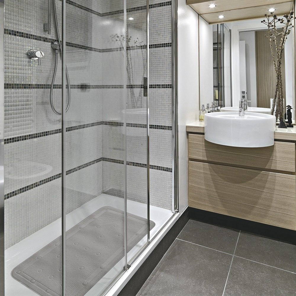 Коврик для ванной комнаты из вспененного ПВХ относится к категории SPA-ковриков. Обладает противоскользящим эффектом, что является его главным преимуществом и предназначением. Мягкая поверхность приятна для кожи.