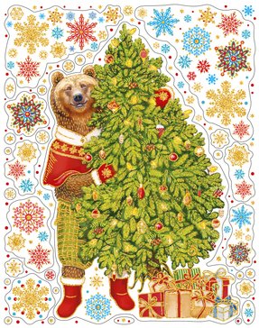 - Украшение новогоднее оконное Magic Time Елка с мишкой 30х38см арт.90279