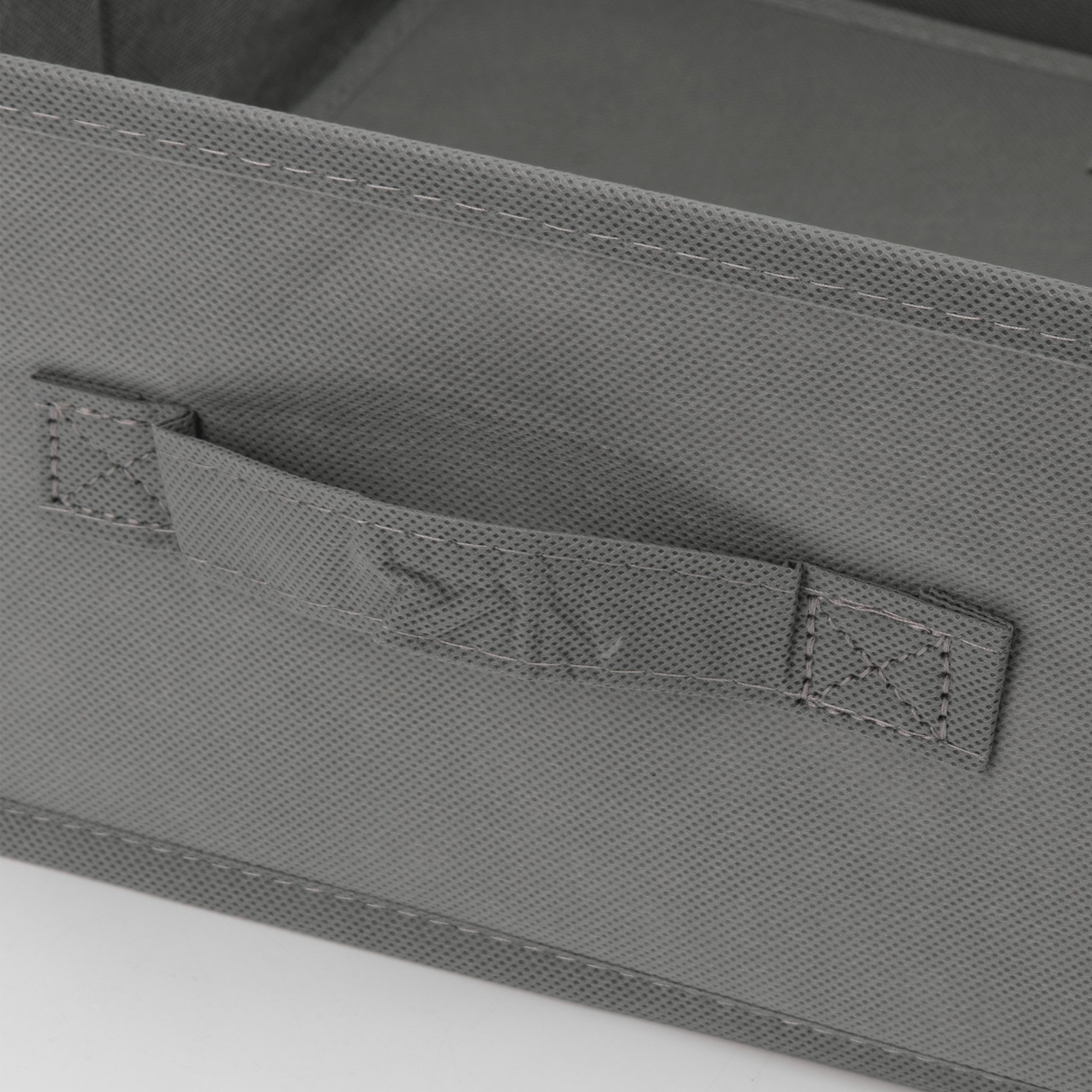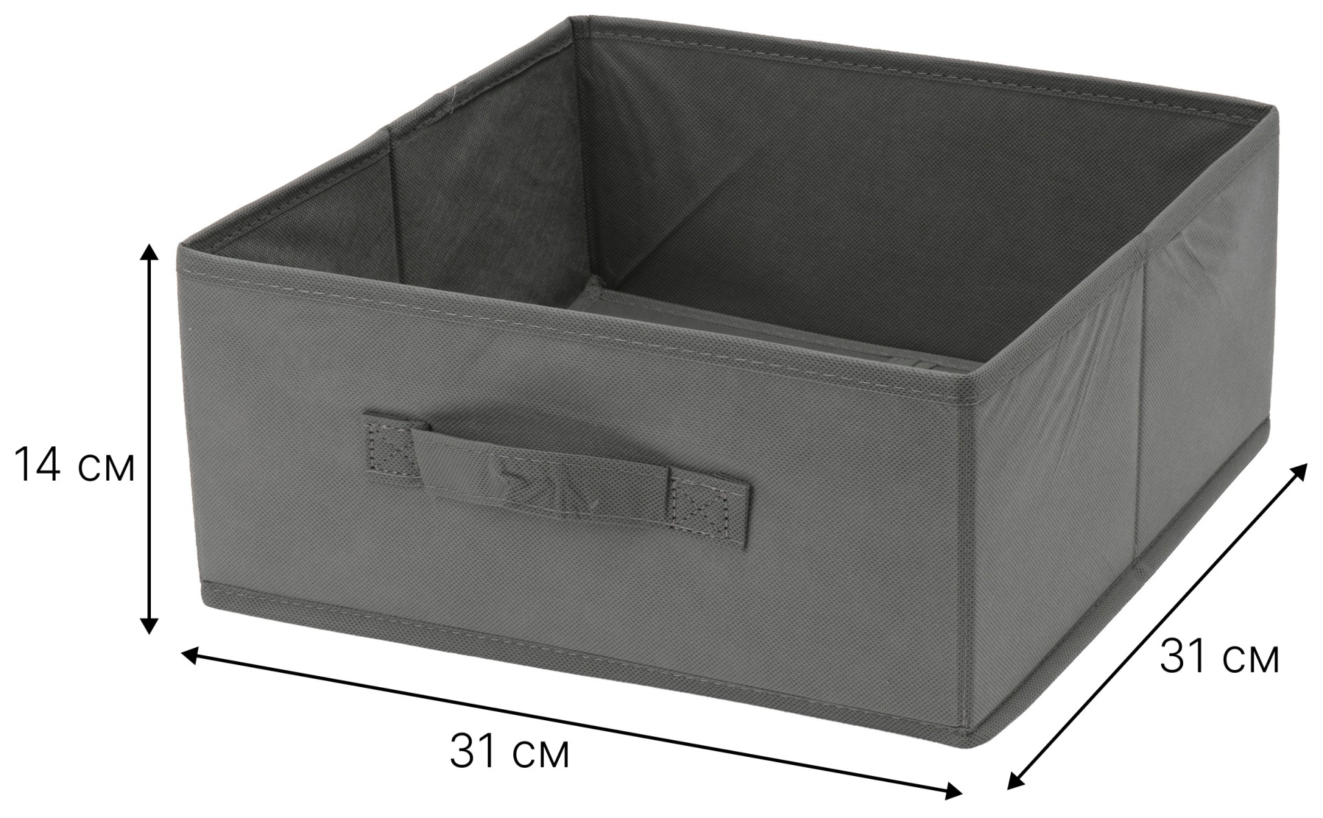 Компактные складные коробки для хранения вещей из нетканого материала помогут сохранить порядок в любой комнате. Коробки предназначены для хранения вещей, различных мелких предметов, игрушек, аксессуаров, книг, документов, белья и одежды. Ручки с двух сторон обеспечивают удобство при переноске, а благодаря внутренним плотным вставкам и жесткому дну коробка для хранения держит форму и не деформируется. При загрязнении можно протирать влажной тканью.
