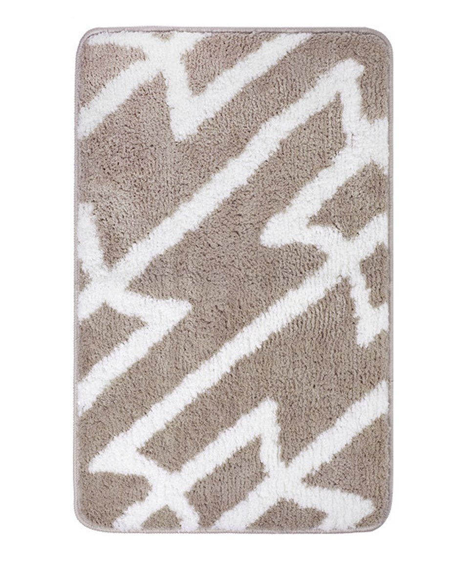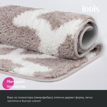 Мягкий коврик для ванной цвета мокко с белым узором имеет плотный высокий ворс (1,7 см), очень приятный на ощупь. Ворс из микрофибры отлично держит форму, легко чистится и быстро сохнет. Коврик подойдет для ванной и туалета.
