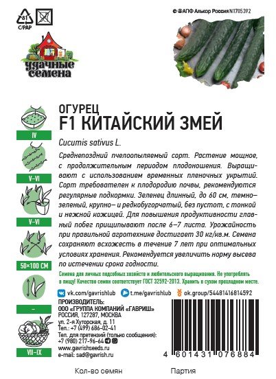 -44%Китайские сорта огурцов славятся непревзойденным вкусом и ароматом плодов: сладкие, сочные, без пустот, с тонкой нежной кожицей и маленькими семенными камерами — идеальны для приготовления свежих летних салатов. Среднепоздний пчелоопыляемый сорт. Растение мощное, интенсивно развивающееся, с продолжительным периодом плодоношения. Выращивают с использованием временных пленочных укрытий. Сорт требователен к плодородию почвы, рекомендуются регулярные подкормки. Зеленец длинный, до 60 см, змеевидный, темно-зеленый, крупно-, редкобугорчатый, с короткой ручкой. Посев на рассаду в конце апреля. Высадка рассады в грунт в конце мая – начале июня в фазе 3-4-х настоящих листьев. Посев непосредственно в грунт – в мае – июне. Схема посадки 50х100 см. Для повышения продуктивности главный побег прищипывают после 6-7 листа. Урожайность при правильной агротехнике достигает 30 кг/м2.