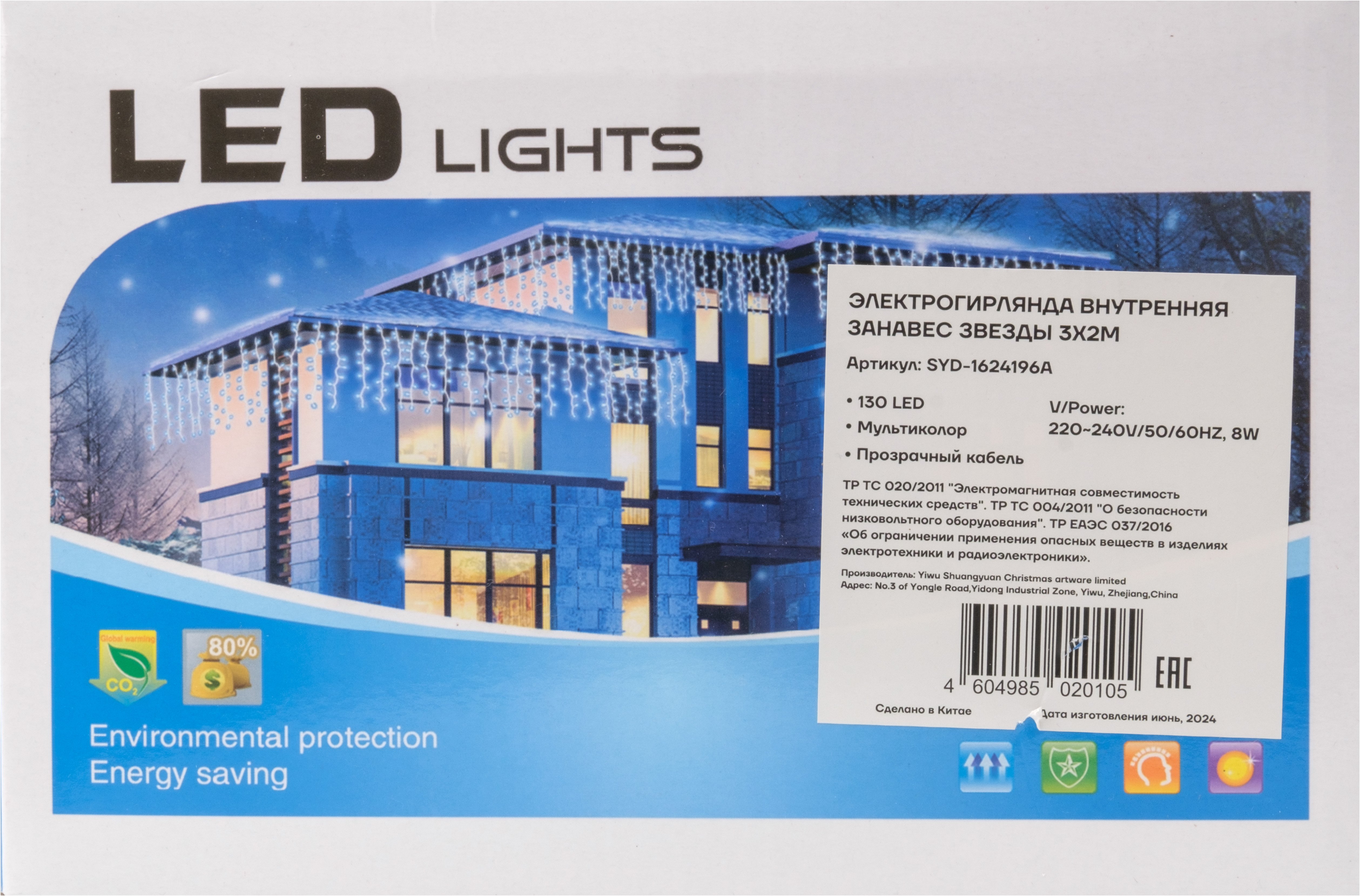 -безопасность: гирлянда соответствует стандартам качества и имеет высокую степень защиты от пыли и влаги; -яркий и красочный свет: разноцветные лампочки создадут неповторимую атмосферу праздника; -простота установки: гирлянда легко крепится к стене или окну с помощью специальных крючков; -экономичность: низкое потребление электроэнергии позволит существенно сэкономить на счетах за электричество.