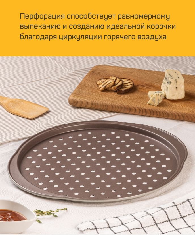 Откройте мир вкусной и ароматной пиццы с формой для выпечки Master House Николетта! Эта антипригарная стальная форма размером 35x32x1 см станет незаменимым помощником на вашей кухне. Благодаря перфорированному дну и ручкам, пицца равномерно пропекается и приобретает хрустящую корочку.Изготовленная из прочной углеродистой стали толщиной 0,4 мм, форма Master House Николетта устойчива к высоким температурам и деформации. Покрытие Goldflon обеспечивает лёгкое извлечение готовой пиццы и минимальное количество масла при готовке.Используйте форму Master House Николетта для приготовления не только пиццы, но и открытых пирогов, слоек и даже домашнего печенья. Она также подходит для замораживания заготовок в морозильной камере.Не упустите возможность порадовать себя и своих близких вкусной пиццей, приготовленной в форме Master House Николетта!