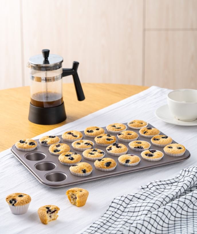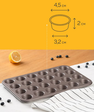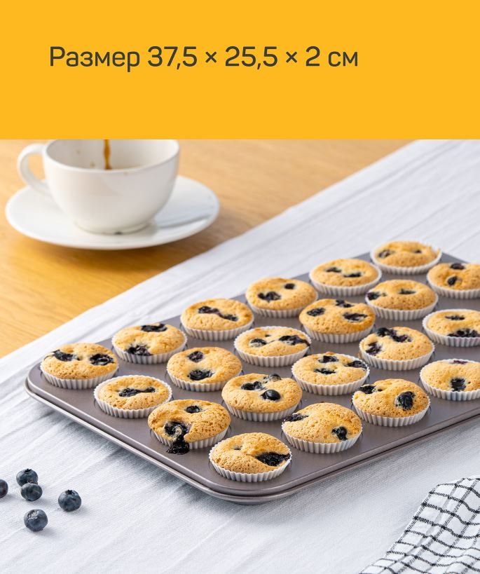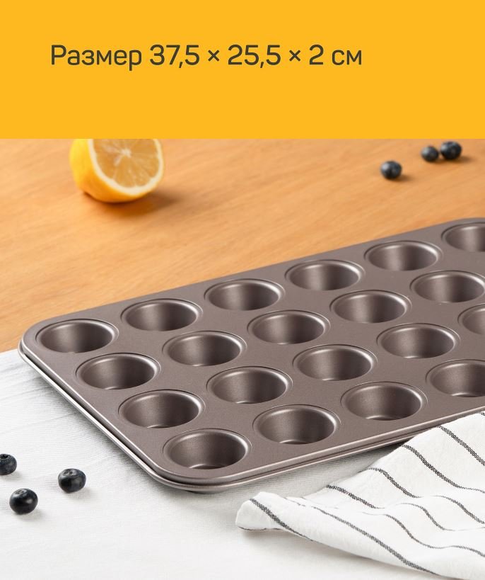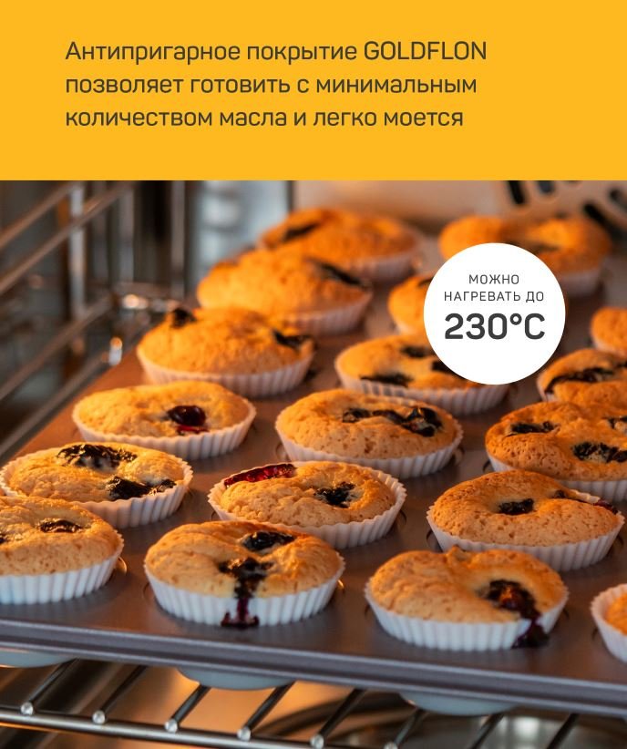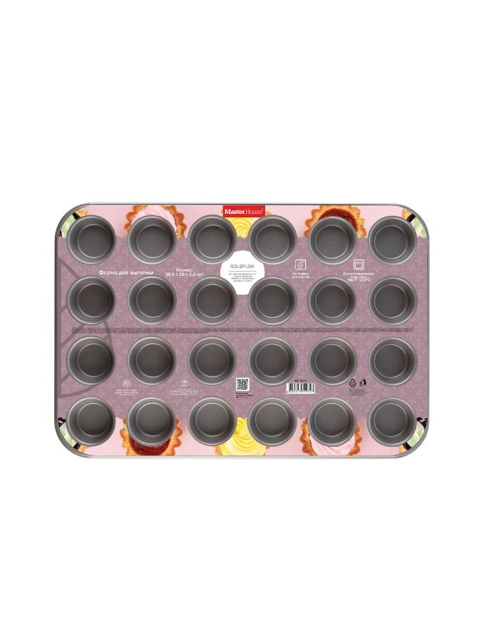 Форма для выпечки кексов «Элизабетта» от Master House — идеальный выбор для любителей домашней выпечки! Эта форма изготовлена из углеродистой стали с антипригарным покрытием Goldflon, что обеспечивает равномерный прогрев изделий и лёгкость в уходе.Форма имеет 24 ячейки размером 38,5 x 26 x 2,2 см, что позволяет выпекать множество кексов одновременно. Антипригарное покрытие гарантирует, что выпечка не прилипнет к стенкам формы и легко извлечётся после приготовления.Для продления срока службы рекомендуется мыть форму вручную, но допускается и мытьё в посудомоечной машине в режиме ECO. Максимальная температура использования — +230 °C.Не упустите возможность порадовать себя и своих близких вкусными домашними кексами в форме «Элизабетта» от Master House!
