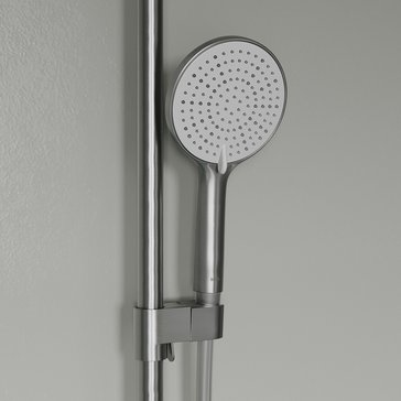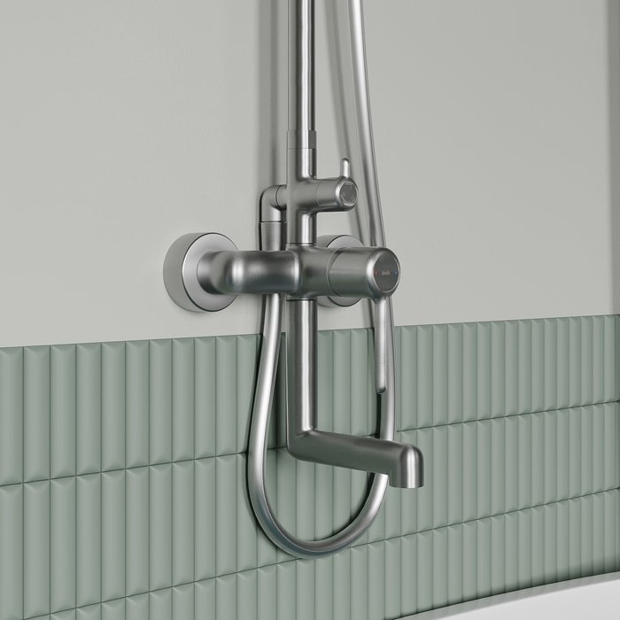Стильная функциональная душевая система Aiger, где удачно сочетается актуальный современный дизайн и трендовый оттенок матового хрома с брашированным покрытием. Тонкая удлиненная ручка добавляет смесителю изящества и комфорт в управлении. • Штанга верхнего душа регулируется по высоте 113-145 см в момент установки смесителя, что позволяет в дальнейшем с комфортом принимать душ всей семье. • Поток воды переключается поворотным керамическим дивертором на стойке – он повторяет дизайн ручки, выглядит стильно и элегантно. • Излив удлиненной формы в общем стиле смесителя, можно повернуть параллельно стене. Скрытый силиконовый аэратор добавляет эстетики и легко чистится от загрязнений. • В комплекте гибкий шланг из ПВХ 1,5 м, верхняя (d=228 мм) и ручная (3 режима, d=116 мм) лейки из коллекции Optima Home в тон. • Покрытие устойчиво к коррозии, появлению царапин, сколов и потускнению. На протяжении многих лет будет выглядеть как новое. Гарантия на смесители IDDIS® – 10 лет, на душевые аксессуары – 3 года. (с) Авторский текст, ноябрь 2023 г.