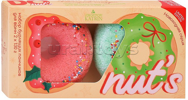 Подарочный набор donuts это 2 ароматных бурлящих пончика красного и зеленого новогоднего цвета с яркой кондитерской посыпкой, с пленительным ароматом свежей выпечки.