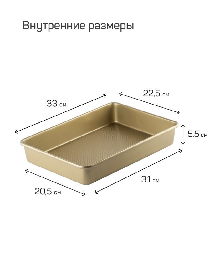 Размеры формы впечатляют: 34x23,5x6 см, что делает её идеальной для приготовления разнообразных блюд. Благодаря антипригарному покрытию, ваша выпечка никогда не пригорит и не прилипнет к стенкам формы.