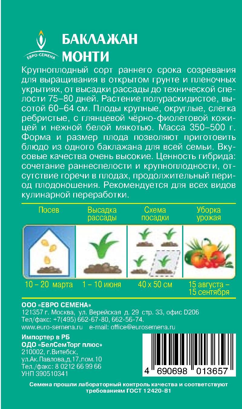 - Семена Баклажан Монти цв/п 0,4г