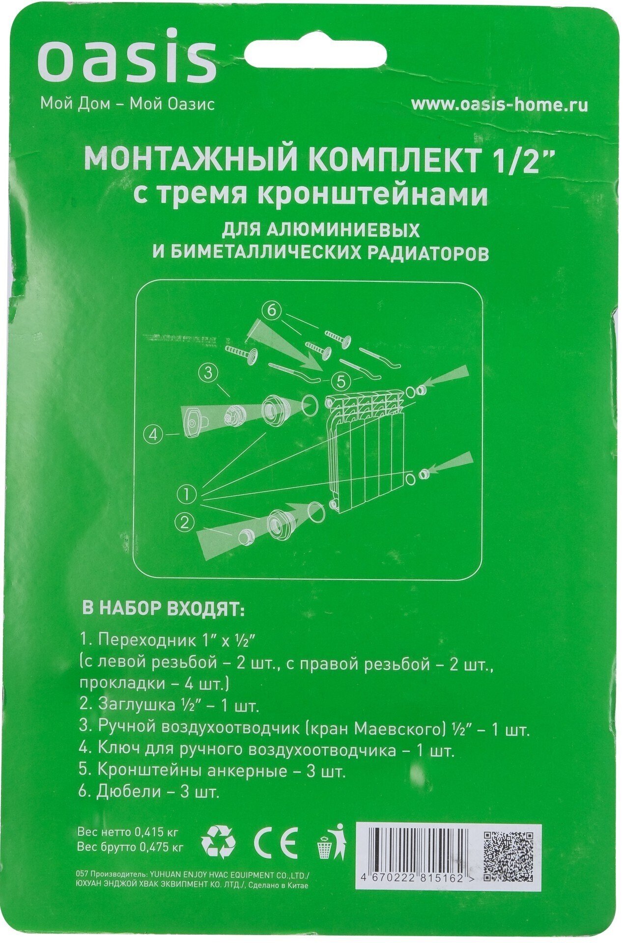 Монтажный комплект для подключения радиатора 1/2 с тремя кронштейнами — идеальное решение для надёжного крепления вашего радиатора! В комплект входят три надёжных кронштейна, изготовленных из прочной стали, которые обеспечивают устойчивость радиатора к внешним воздействиям и гарантируют его долговечность.
