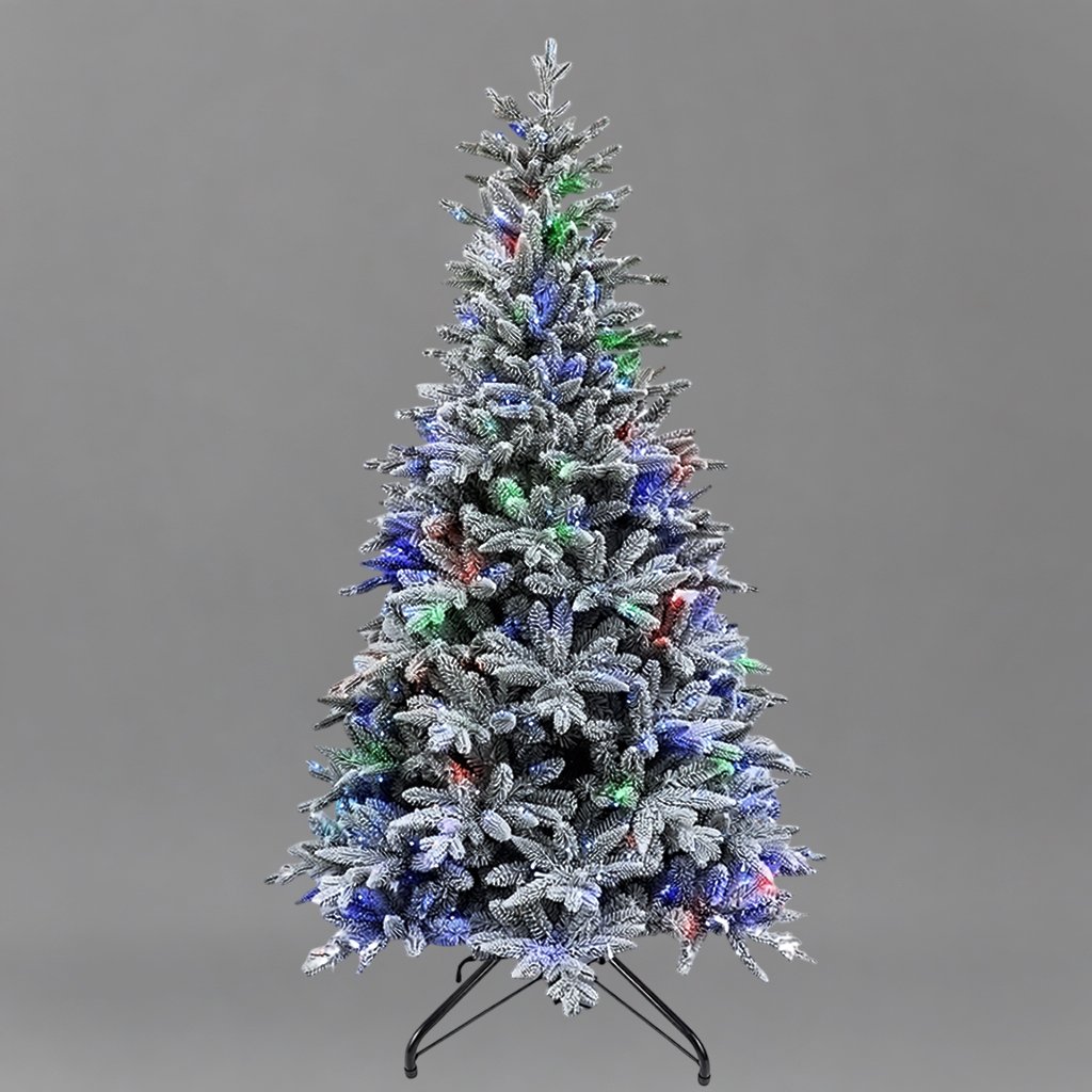 Мадлен с мультиколорной подсветкой из 500 светодиодов привела детей в настоящий восторг! Флокирование создает эффект заснеженности. Высота 210см позволяет установить как в квартире, так и в частном доме. Цвета плавно переливаются, создавая волшебную атмосферу. Сборка простая - справились за 25 минут. Качество отличное - провода надежно спрятаны, иголки не осыпаются. Настоящее украшение праздника!